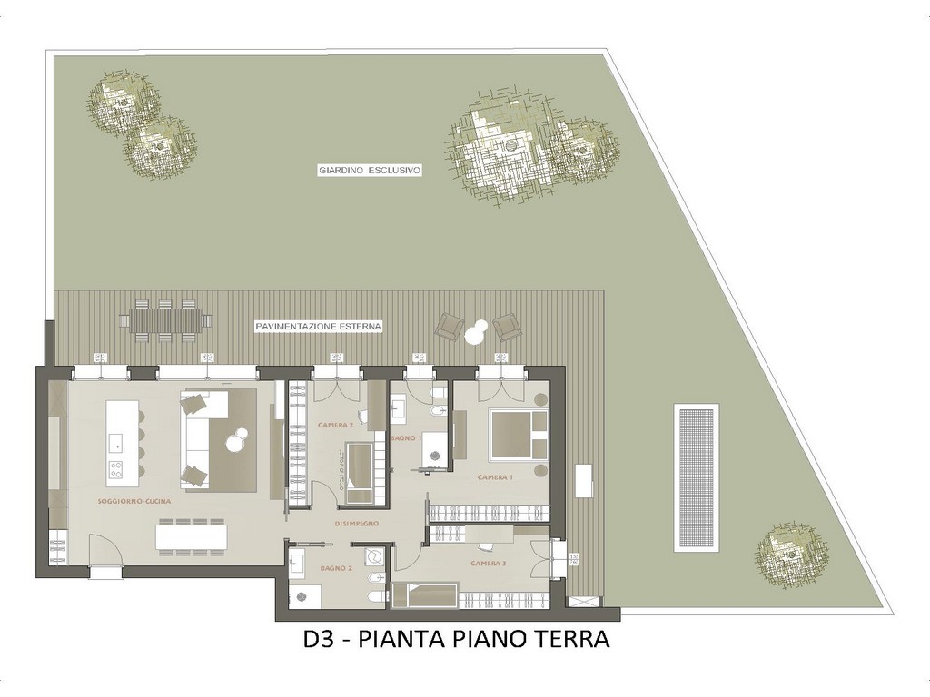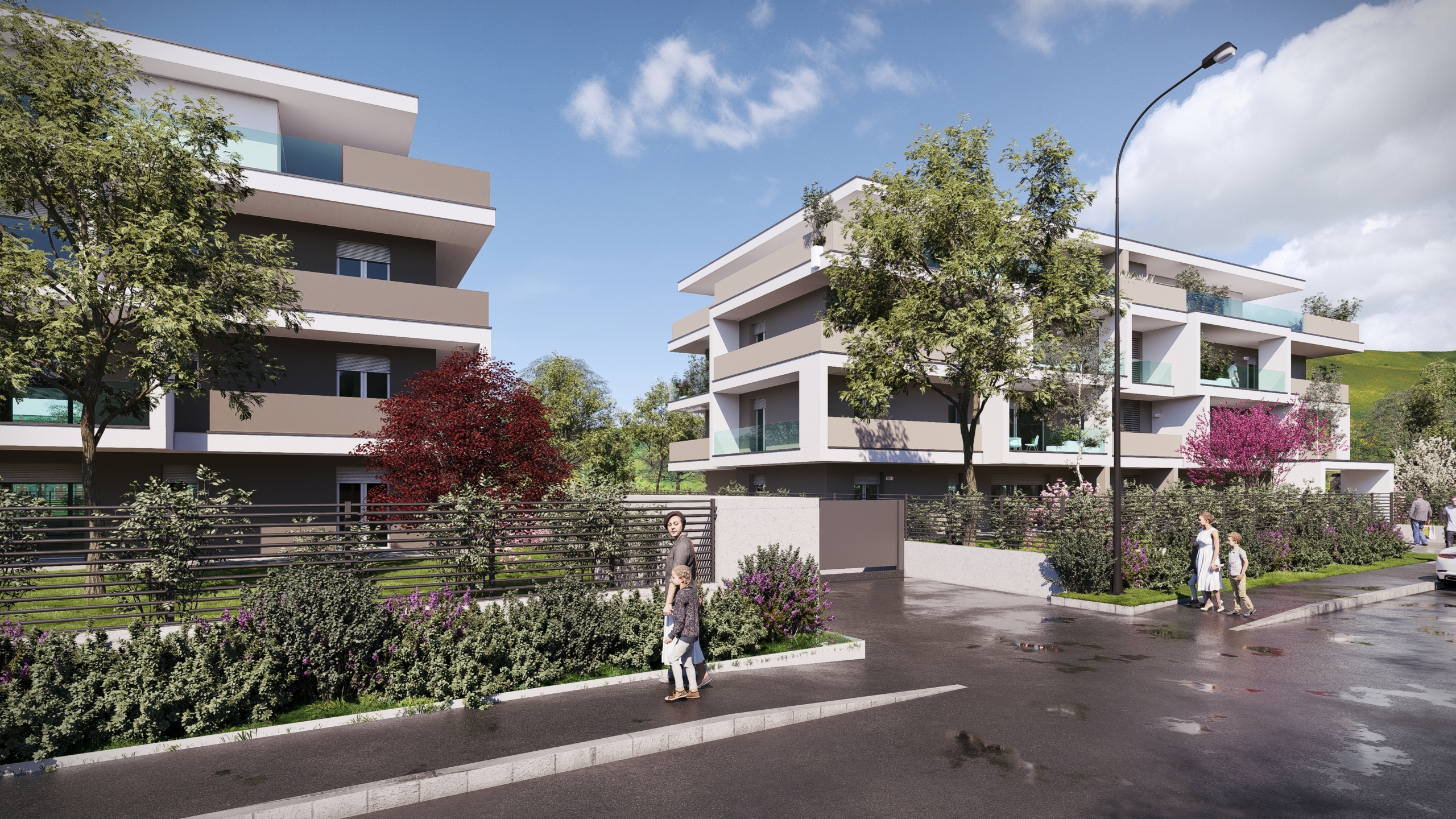 Albarotto non è solo scuole: include anche un centro sportivo attrezzato, circondato da villette, palazzine e spazi verdi