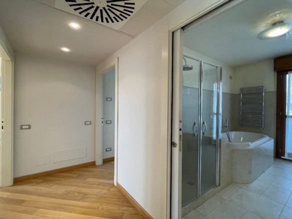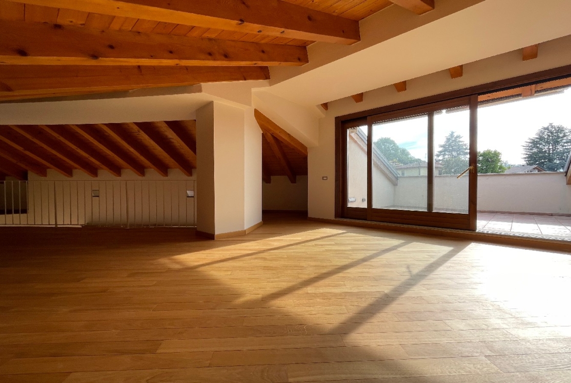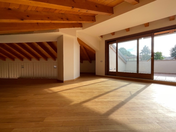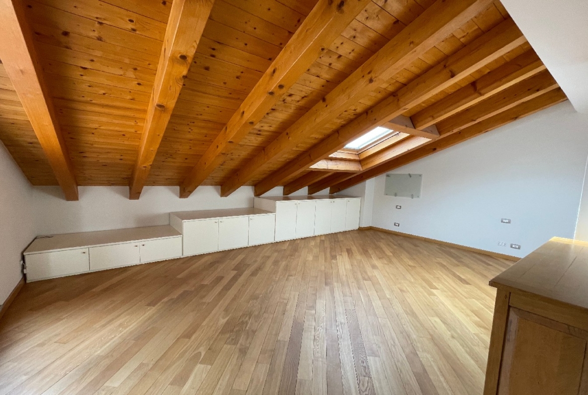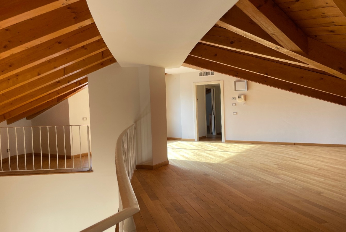 Nel Comune di Trescore Balneario, in prestigioso e moderno contesto nel centro del paese, proponiamo in vendita esclusivo attico disposto su due livelli sito al terzo e quarto piano. La soluzione, all’interno di una palazzina di recente costruzione servita da ascensore, è composta da ampio e luminoso soggiorno di oltre 45 mq con cucina separata abitabile, disimpegno, tre camere di cui una con cabina armadio, bagno, due ripostigli, due balconi ed una terrazza vivibile panoramica al piano principale, ulteriori tre locali, disimpegno, bagno e terrazza al piano soppalcato con tetto in legno e travi a vista. Ottime finiture, riscaldamento a pavimento, impianto di raffrescamento canalizzato e d’allarme. Euro 420.000. Possibilità di box doppio. Qualità Poloni Immobiliare. (Classe energetica D – 140,08 kWh/mqa)