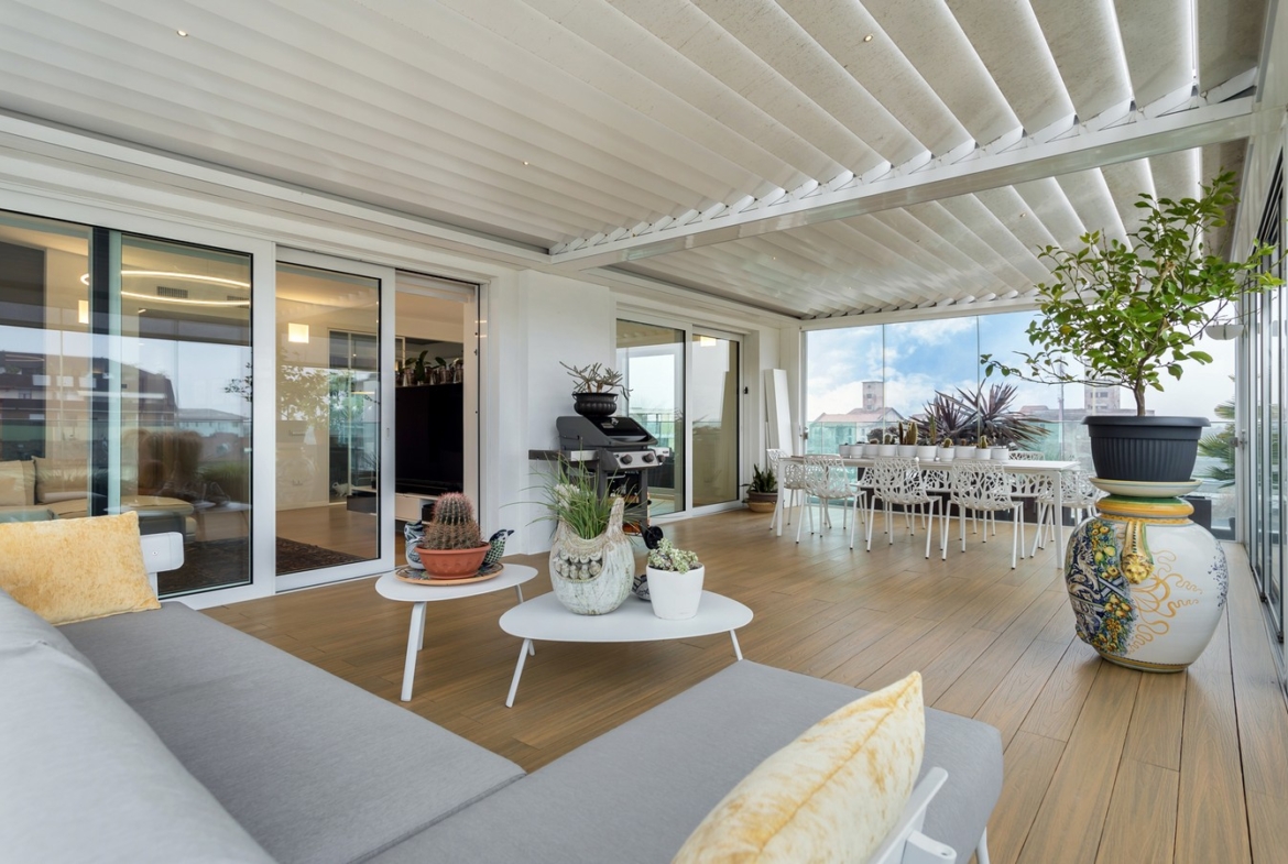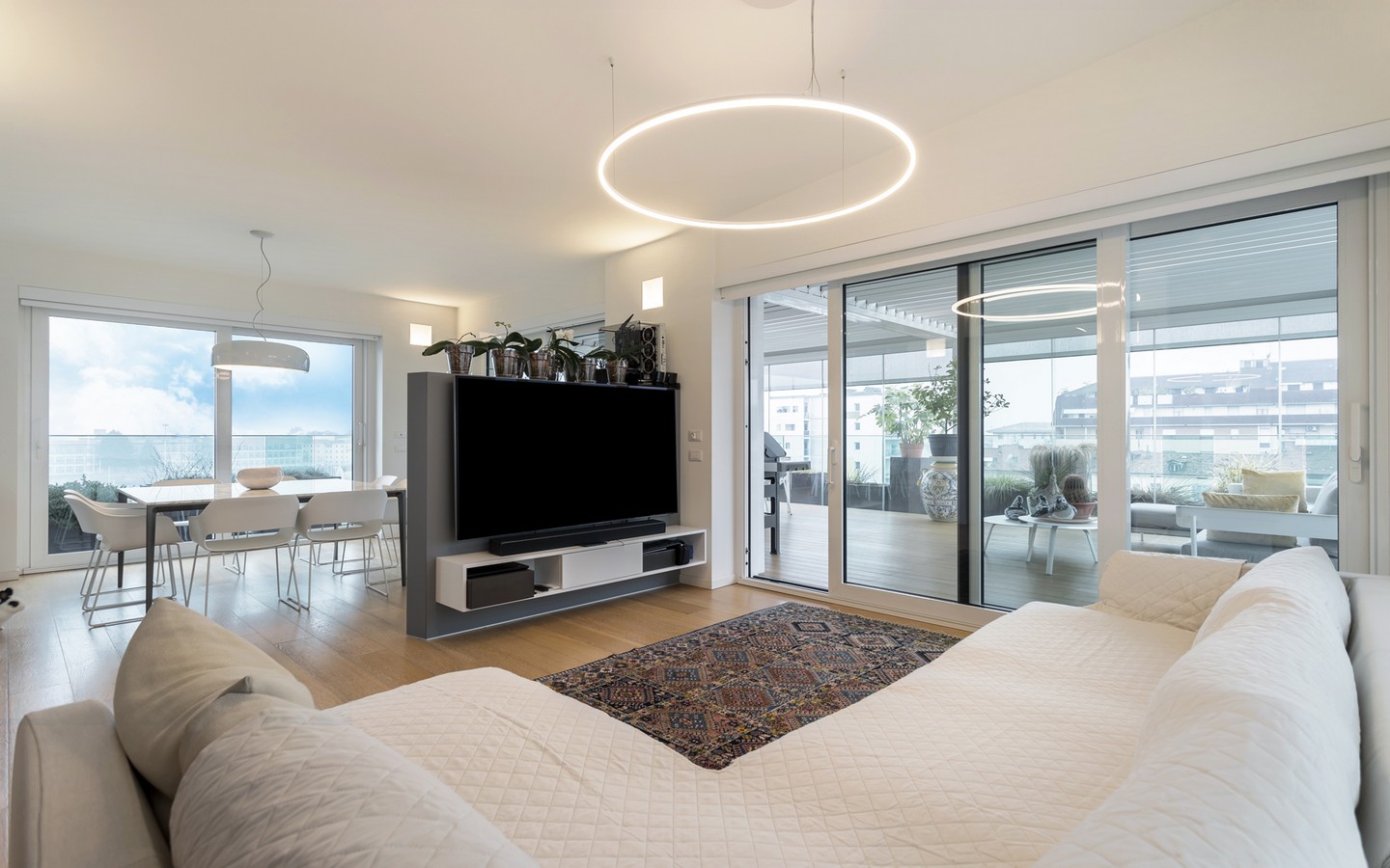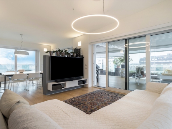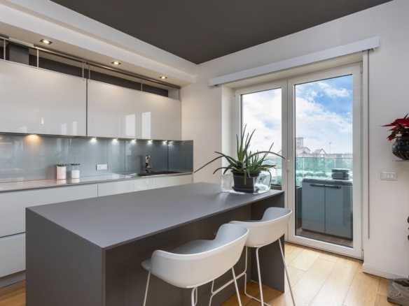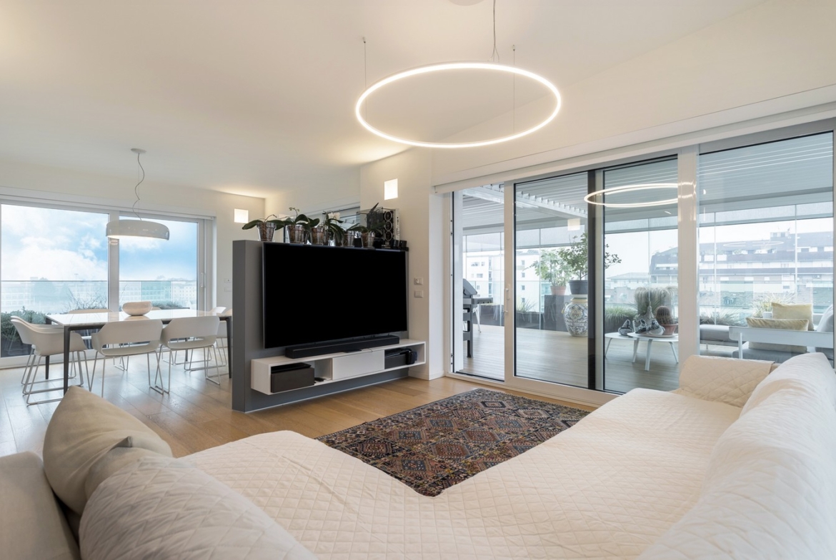 In posizione centrale del comune di Bergamo, proponiamo in vendita esclusivo attico posto al quinto ed ultimo piano di una residenza di recente costruzione servita da ascensore. Questa interessante soluzione si compone di ampia e luminosa zona living con cucina separata abitabile, disimpegno, camera padronale con cabina armadio e bagno in suite, ulteriori due camere e due bagni. Nota di pregio dell’immobile è la terrazza panoramica perfettamente fruibile in ogni stagione grazie alla serra bioclimatica installata. Impianto fotovoltaico da 7 kw con batteria di accumulo, impianto di domotica, impianto di condizionamento canalizzato, impianto di allarme completo ed alto grado di finiture. Completano la proprietà l’autorimessa e la cantina al piano secondo interrato. Possibilità di secondo box. Euro 850.000. In collaborazione con Unicredit RES. (Classe energetica A2 – IPE 64,59 kWh/mqa)