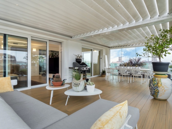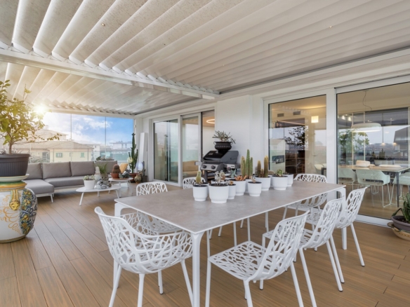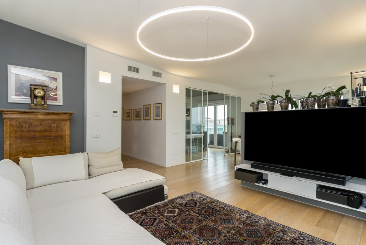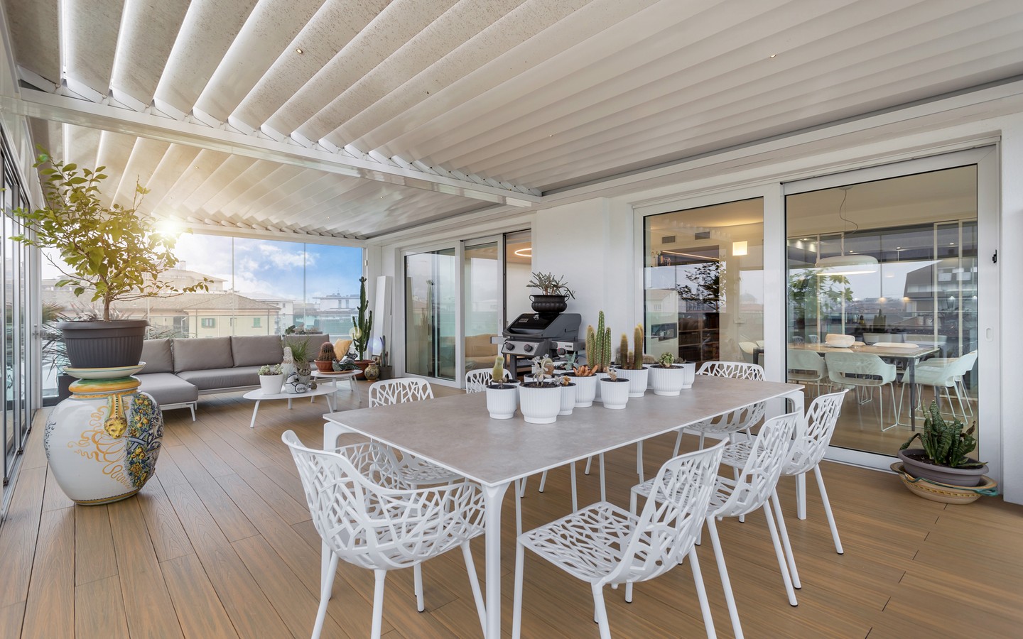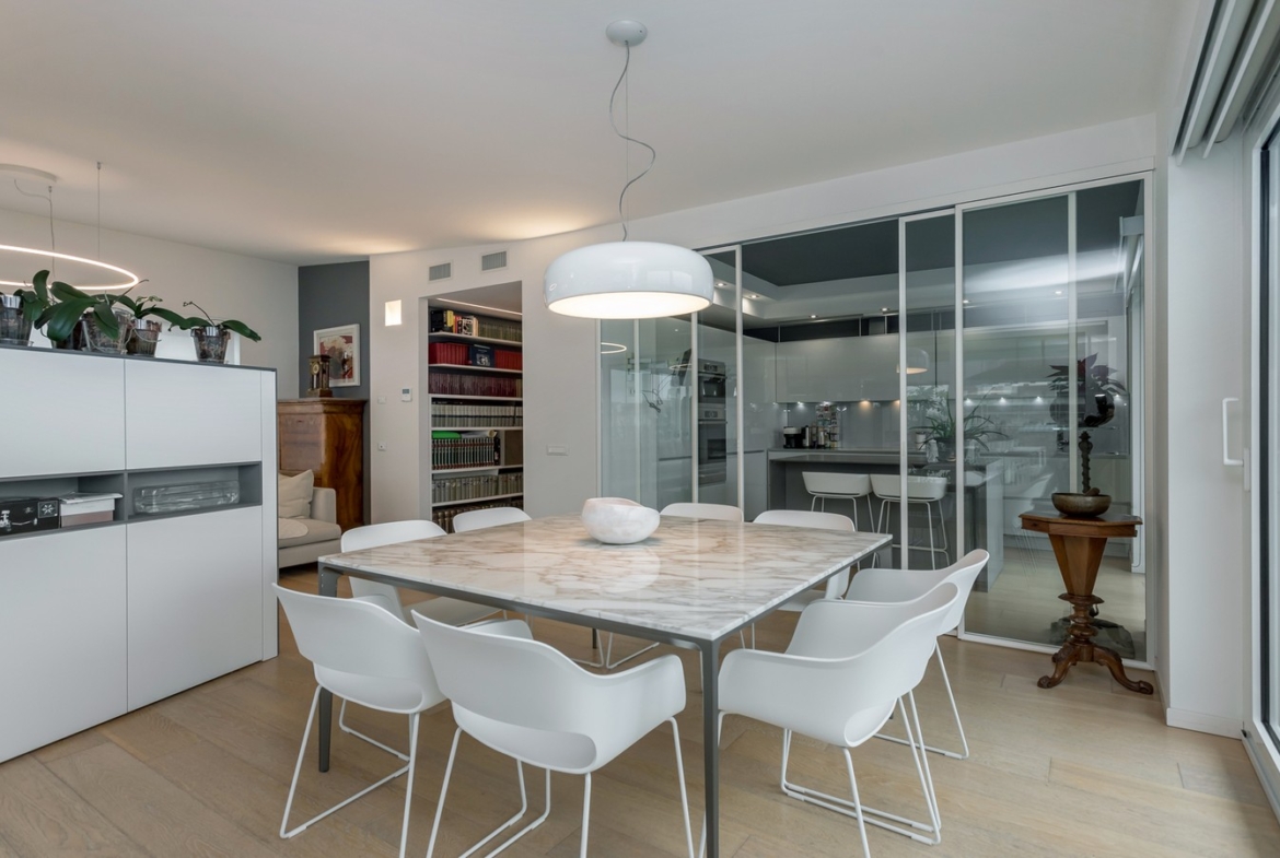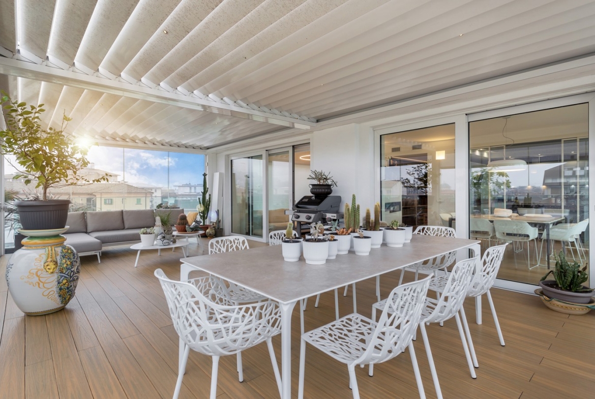 In posizione centrale del comune di Bergamo, proponiamo in vendita esclusivo attico posto al quinto ed ultimo piano di una residenza di recente costruzione servita da ascensore. Questa interessante soluzione si compone di ampia e luminosa zona living con cucina separata abitabile, disimpegno, camera padronale con cabina armadio e bagno in suite, ulteriori due camere e due bagni. Nota di pregio dell’immobile è la terrazza panoramica perfettamente fruibile in ogni stagione grazie alla serra bioclimatica installata. Impianto fotovoltaico da 7 kw con batteria di accumulo, impianto di domotica, impianto di condizionamento canalizzato, impianto di allarme completo ed alto grado di finiture. Completano la proprietà l’autorimessa e la cantina al piano secondo interrato. Possibilità di secondo box. Euro 850.000. In collaborazione con Unicredit RES. (Classe energetica A2 – IPE 64,59 kWh/mqa)