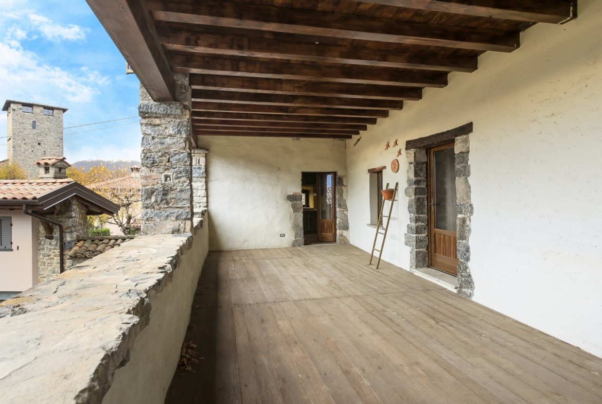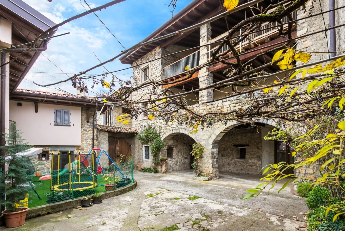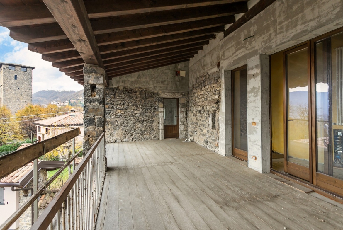 Nel pieno centro storico del comune di Bianzano proponiamo in vendita meravigliosa residenza storica del XV – XVI secolo recentemente ristrutturata. La soluzione si compone al piano terra di ingresso, cantina, due locali accessori e ampio porticato con loggiato ad archi aperto su una corte interna. Al primo piano il disimpegno porta ad un ampio salone con camino originale e travi a vista, cucina separata e affaccio su un loggiato coperto con vista panoramica sul castello di Bianzano, Lago di Endine e la Valle Cavallina. Sempre al primo piano un bagno e un’ampia lavanderia completano la soluzione. Al secondo piano 4 camere, 2 bagni, disimpegno e loggiato coperto. Euro 219.000. Qualità Poloni Immobiliare. (Classe energetica G – IPE 484,56 kWh/mq).