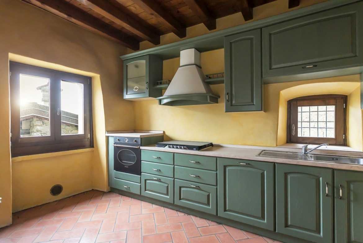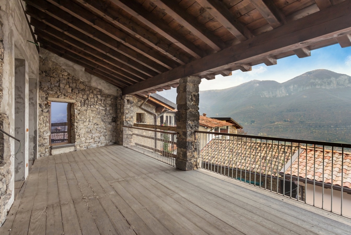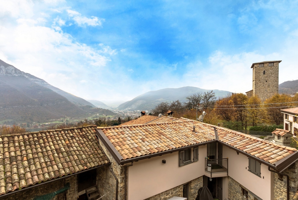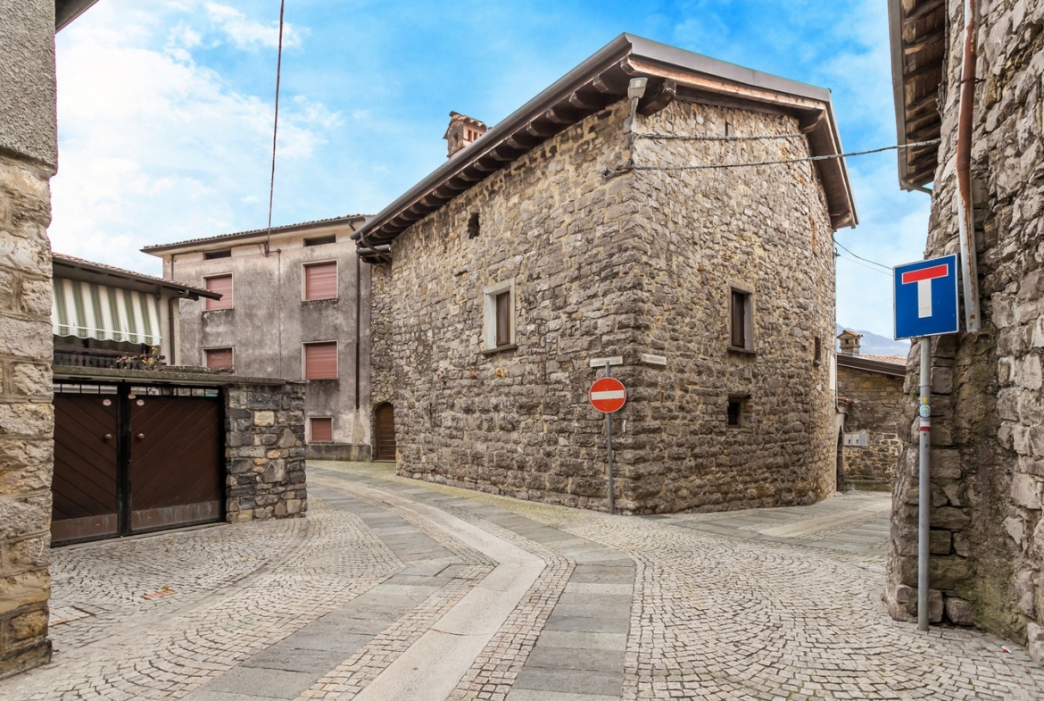 Nel pieno centro storico del comune di Bianzano proponiamo in vendita meravigliosa residenza storica del XV – XVI secolo recentemente ristrutturata. La soluzione si compone al piano terra di ingresso, cantina, due locali accessori e ampio porticato con loggiato ad archi aperto su una corte interna. Al primo piano il disimpegno porta ad un ampio salone con camino originale e travi a vista, cucina separata e affaccio su un loggiato coperto con vista panoramica sul castello di Bianzano, Lago di Endine e la Valle Cavallina. Sempre al primo piano un bagno e un’ampia lavanderia completano la soluzione. Al secondo piano 4 camere, 2 bagni, disimpegno e loggiato coperto. Euro 219.000. Qualità Poloni Immobiliare. (Classe energetica G – IPE 484,56 kWh/mq).