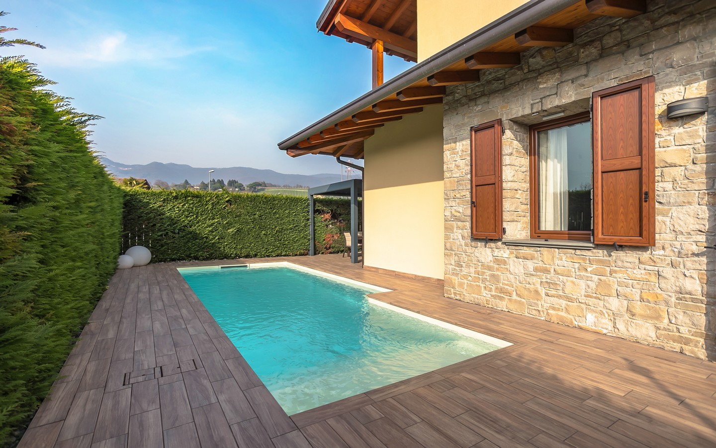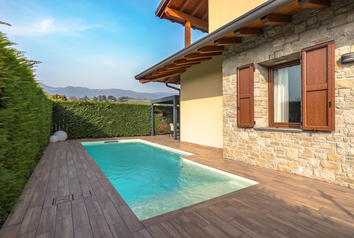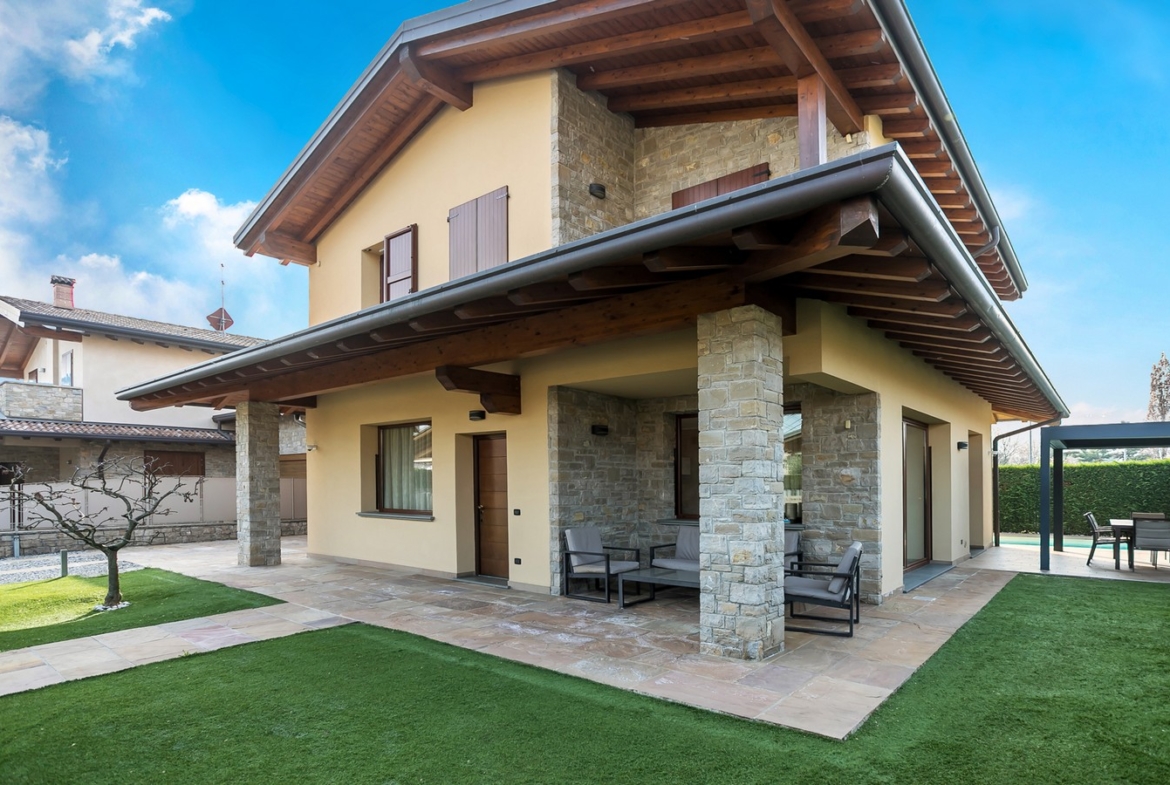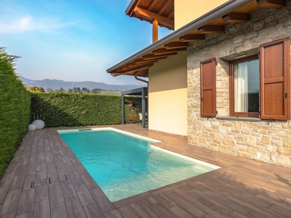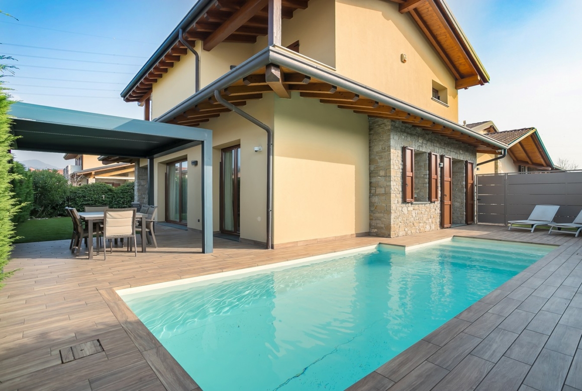 Nel comune di Cenate Sotto, sempre tra i più richiesti, in una delle migliori zone residenziali del paese, proponiamo in vendita esclusiva villa singola con piscina. La soluzione, disposta su due livelli, si compone di ingresso con ampia e luminosa zona living, zona pranzo e ampia cucina abitabile e separata con affaccio diretto alla zona esterna con portico coperto e piscina. Al piano terra troviamo anche una camera / studio e un bagno. Al piano primo disimpegno, tre ampie camere, una lavanderia e un bagno. Concludono la proprietà un ampio sottotetto al piano primo, l’autorimessa doppia in larghezza all’americana e la zona esterna pavimentata con portico, giardino esclusivo e piscina riscaldata. Impianto fotovoltaico da 5 kw, impianto d’allarme completo, impianto d’aria condizionata completa. La posizione in una delle zone più tranquille e panoramiche del comune e in una strada a fondo chiuso privata, dona all’immobile ancora più prestigio. Euro 680.000. Qualità Poloni Immobiliare. (Classe energetica A3 – IPE 48,81 kWh/mqa).