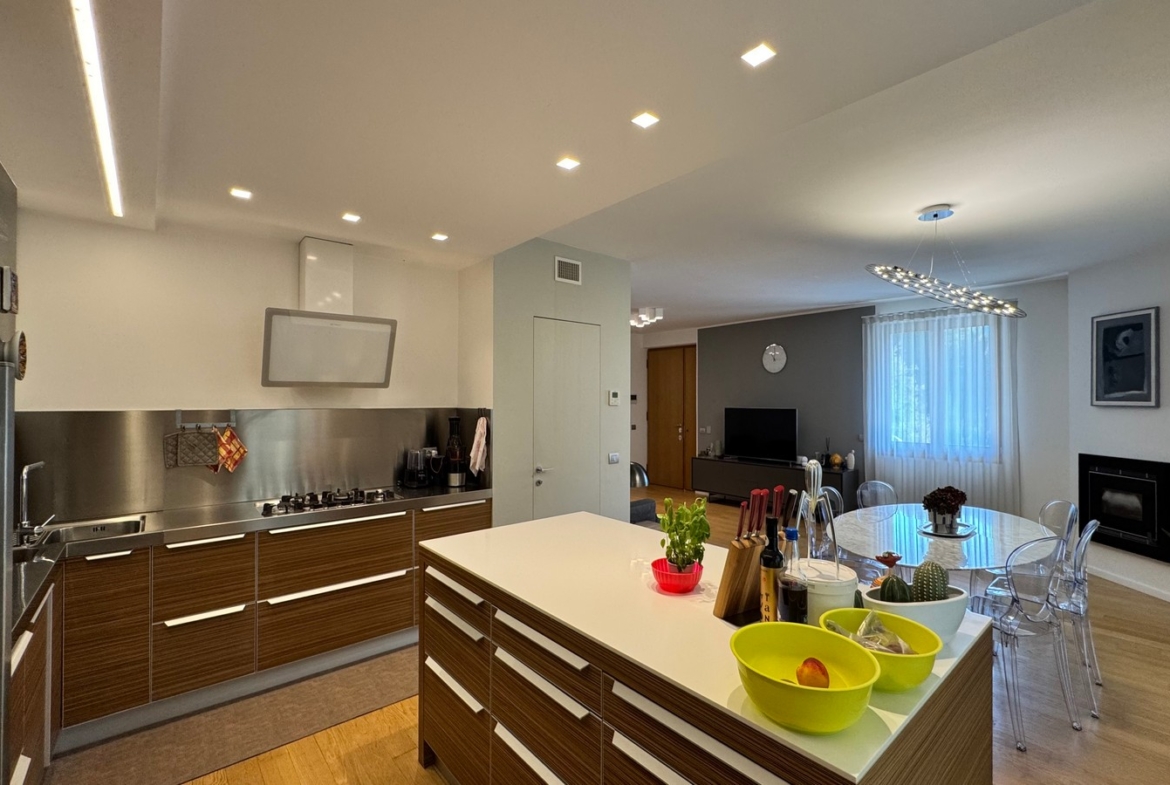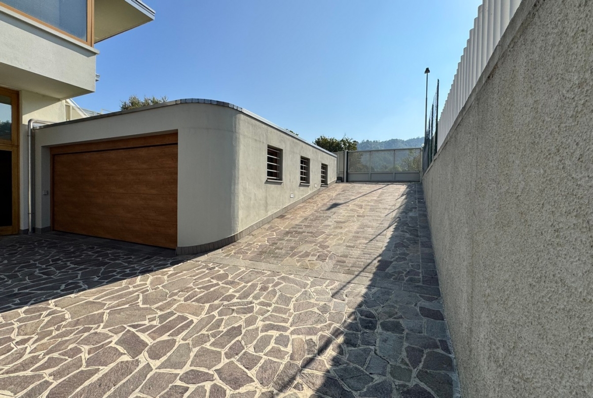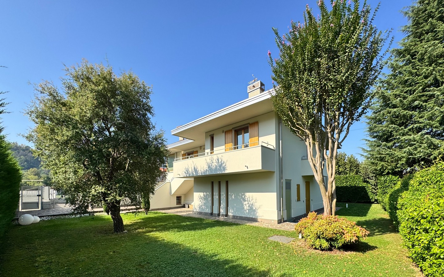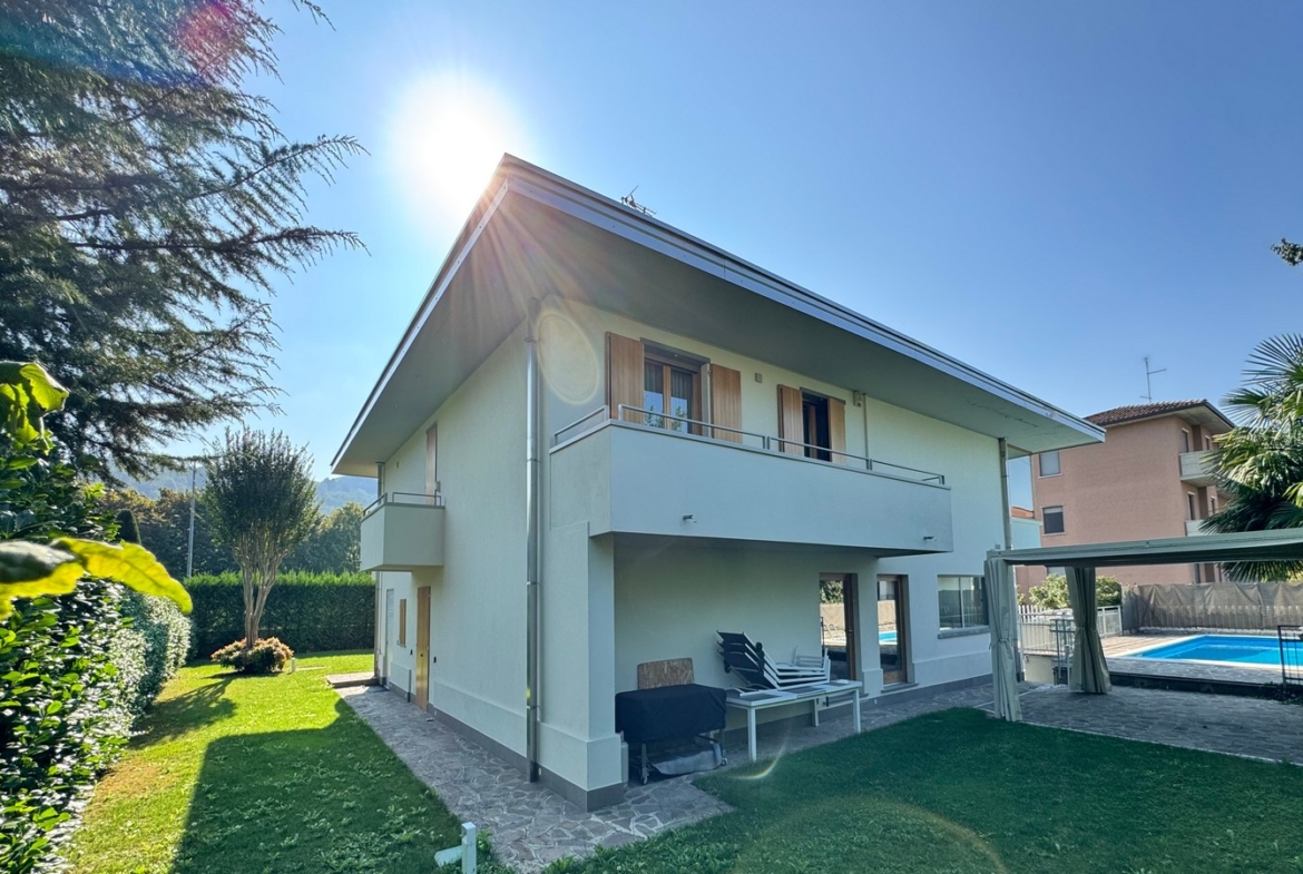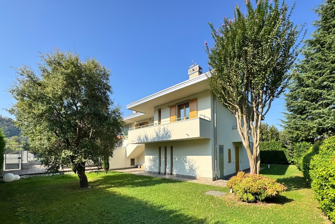Nel comune di Gorlago, immersa nel verde della zona Montecchi, proponiamo in vendita esclusiva villa singola ristrutturata recentemente posta su due livelli con 800 mq di area esterna piantumata con impianto di irrigazione automatizzato e grande piscina interrata. L’abitazione principale si sviluppa al piano rialzato e risulta composta da ampia e luminosa zona living con cucina a vista e zona pranzo, disimpegno, tre camere, bagno, due ripostigli e quattro balconi. Al piano terra la villa offre ambienti versatili, ben organizzati e multifunzionali: locali pluriuso trasformati in una suggestiva e ampia zona relax della stessa ampiezza del piano abitativo con cucina, camera, bagno e un’area soppalcata con divani. Completano la proprietà la cantina e l’autorimessa quadrupla di nuova realizzazione interamente piastrellata con comodo accesso tramite portone sezionale automatizzato. Finiture di pregio con parquet in rovere a listoni in tutto il piano abitativo, travertino nel primo bagno e marmo di Carrara nel secondo bagno. Rivestimenti in resina e legno al piano terra. Riscaldamento a pavimento e raffrescamento canalizzato nel reparto giorno e split indipendenti in ogni camera. Euro 590.000. Qualità Poloni Immobiliare. (Classe energetica in fase di elaborazione).