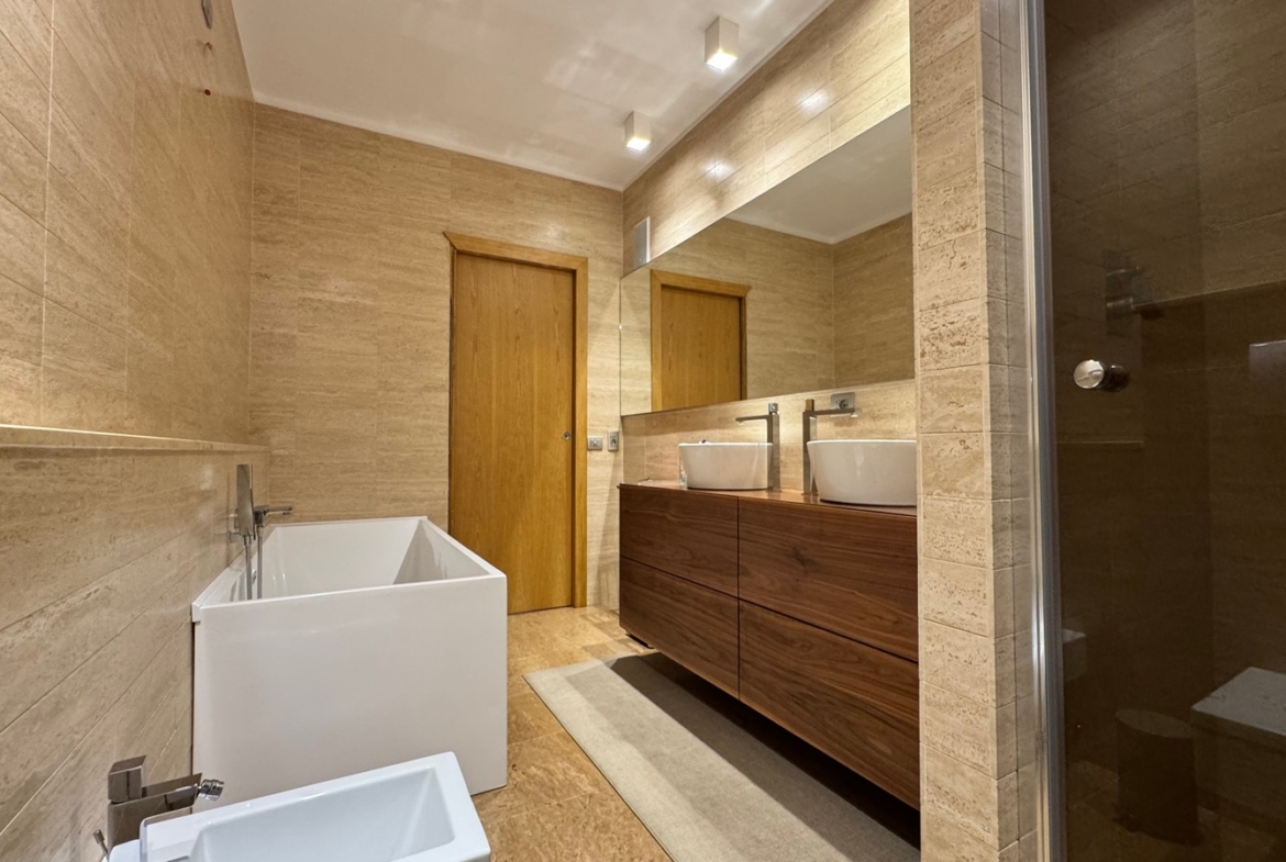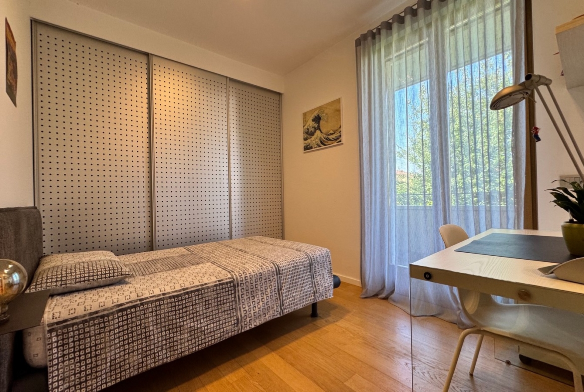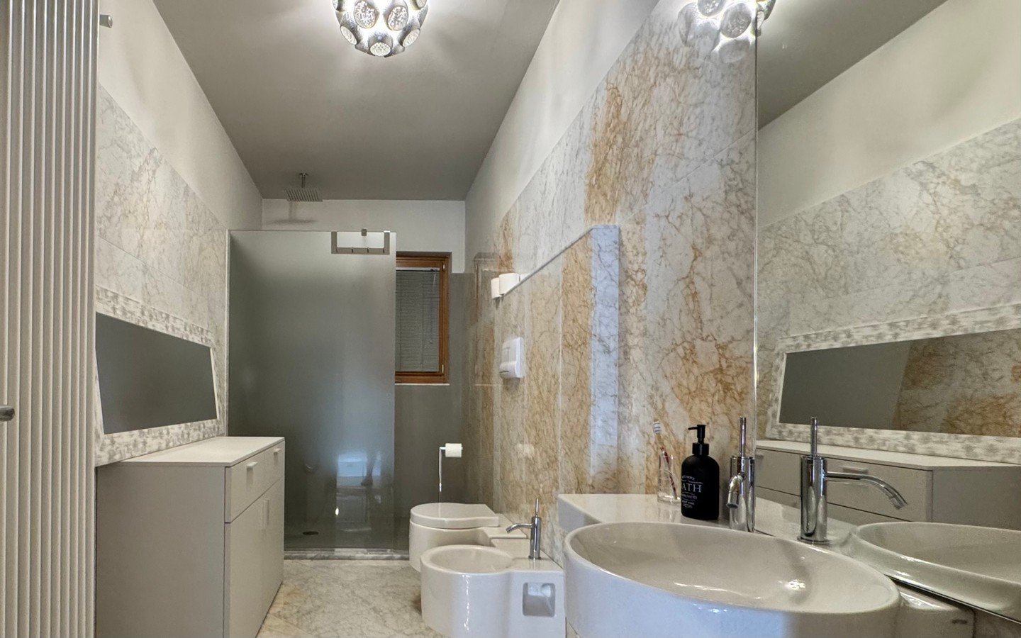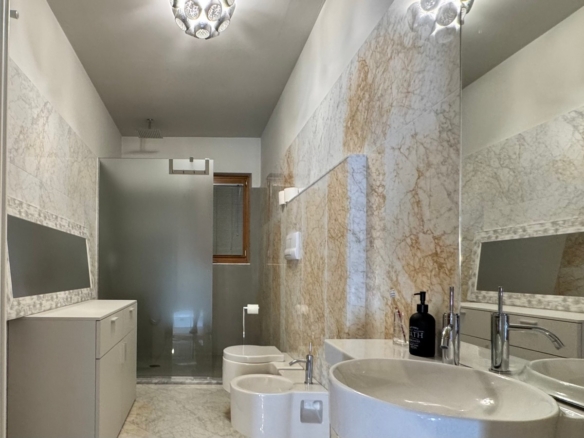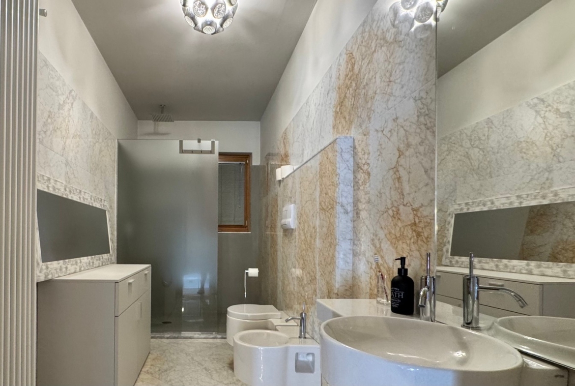 Nel comune di Gorlago, immersa nel verde della zona Montecchi, proponiamo in vendita esclusiva villa singola ristrutturata recentemente posta su due livelli con 800 mq di area esterna piantumata con impianto di irrigazione automatizzato e grande piscina interrata. L’abitazione principale si sviluppa al piano rialzato e risulta composta da ampia e luminosa zona living con cucina a vista e zona pranzo, disimpegno, tre camere, bagno, due ripostigli e quattro balconi. Al piano terra la villa offre ambienti versatili, ben organizzati e multifunzionali: locali pluriuso trasformati in una suggestiva e ampia zona relax della stessa ampiezza del piano abitativo con cucina, camera, bagno e un’area soppalcata con divani. Completano la proprietà la cantina e l’autorimessa quadrupla di nuova realizzazione interamente piastrellata con comodo accesso tramite portone sezionale automatizzato. Finiture di pregio con parquet in rovere a listoni in tutto il piano abitativo, travertino nel primo bagno e marmo di Carrara nel secondo bagno. Rivestimenti in resina e legno al piano terra. Riscaldamento a pavimento e raffrescamento canalizzato nel reparto giorno e split indipendenti in ogni camera. Euro 590.000. Qualità Poloni Immobiliare. (Classe energetica in fase di elaborazione).