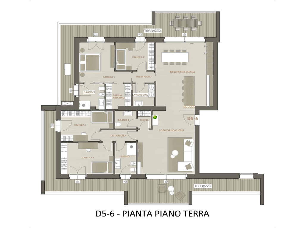 D5-6 – LIVING TRESCORE, la nuova residenza dove design moderno, comfort abitativo e innovazione sostenibile si incontrano per vivere green con stile. Nel comune di Trescore Balneario, in posizione strategica con i principali servizi a portata di mano, proponiamo in vendita esclusivo pentalocale posto al piano primo, ideale per famiglie numerose e per chi ama le ampie metrature, composto da luminosa zona living con cucina e zona pranzo separate, due disimpegni, quattro camere, cabina armadio, tre bagni, lavanderia ed oltre 80 mq di terrazzi perimetrali. Impiantistica di ultima generazione ad alta efficienza energetica, con soluzioni che garantiscono consumi ridotti nel pieno rispetto dell’ambiente. VMC, riscaldamento a pavimento con pompa di calore esclusiva ed impianto fotovoltaico autonomo per ogni unità. Possibilità di autorimesse doppie o singole. Prezzo su richiesta. Qualità Poloni Immobiliare. Valori di progetto classe energetica A4.