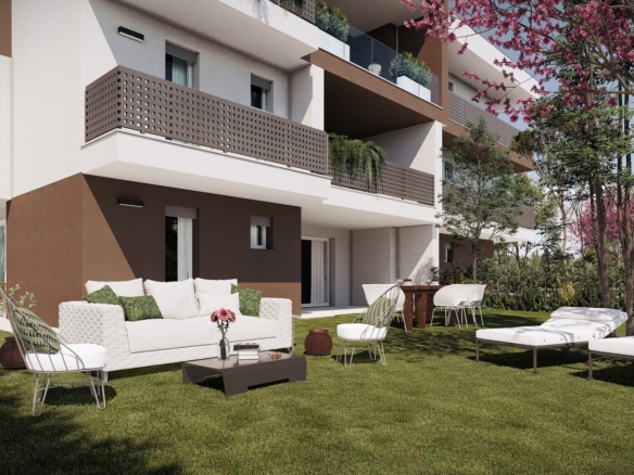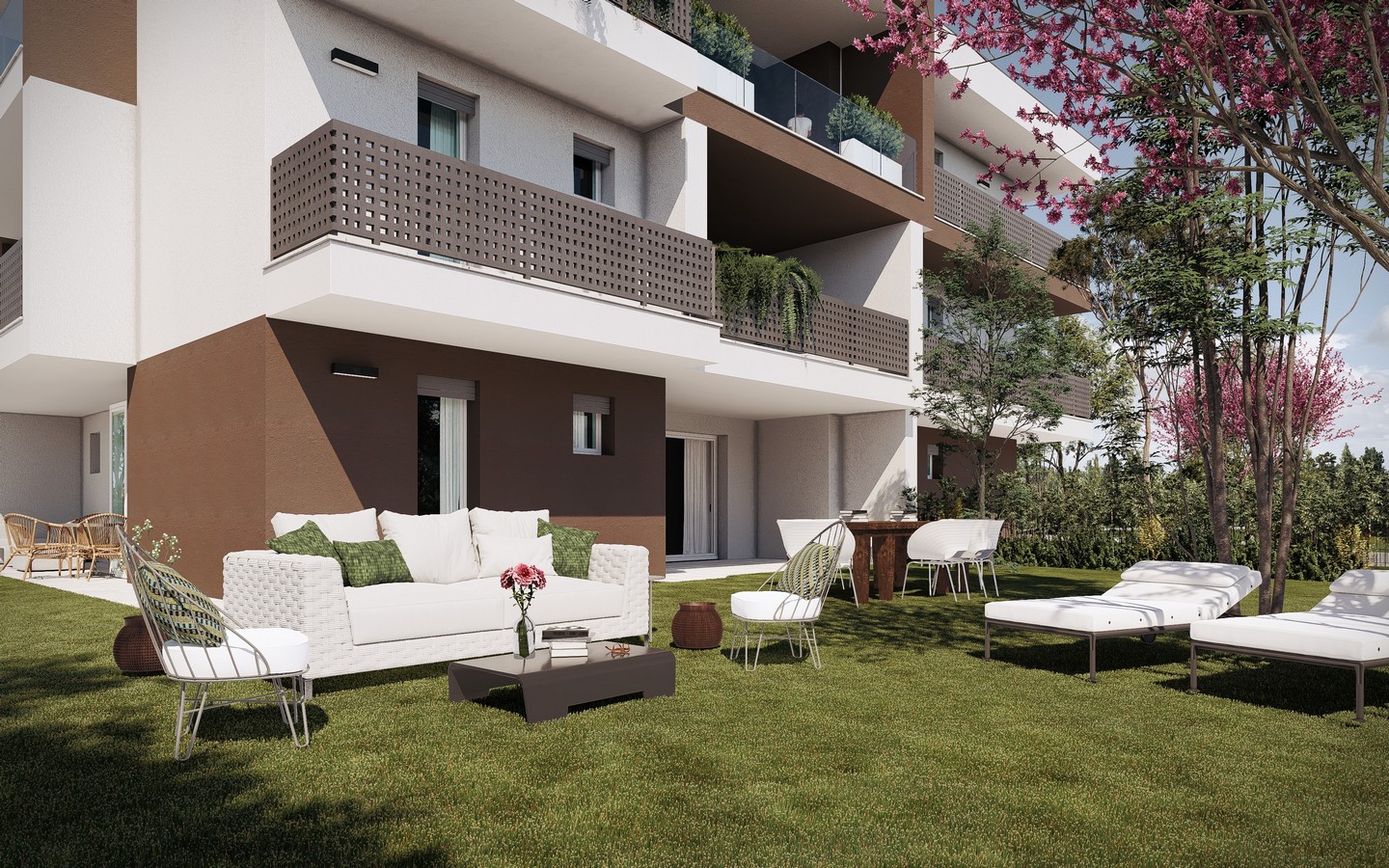 La soluzione del quadrilocale A4 posto al piano terra si compone di ingresso, zona living e cucina a vista con affaccio su ampia zona pavimentata esterna, disimpegno, tre camere da letto, una delle quali con cabina armadio e bagno en suite, ulteriore bagno. Completa la proprietà un’ampia zona esterna esclusiva da 200 mq con zona esterna pavimentata.