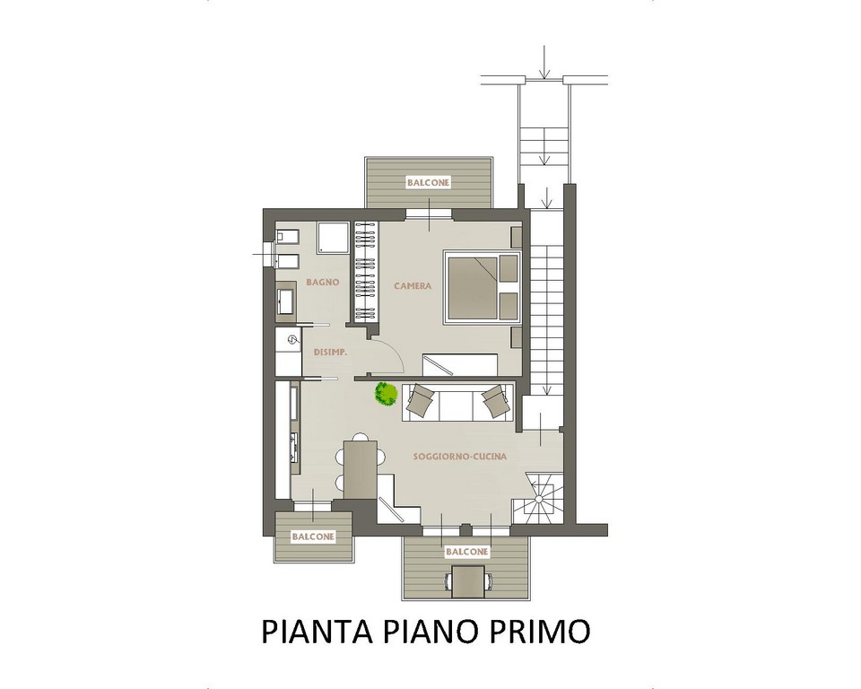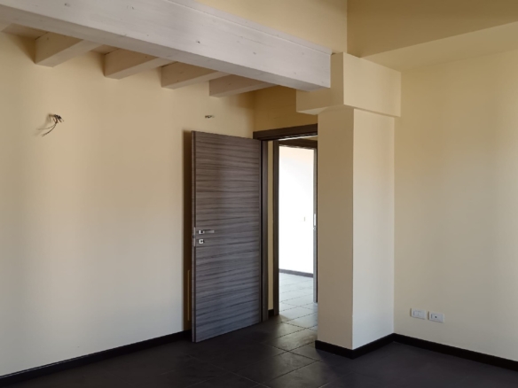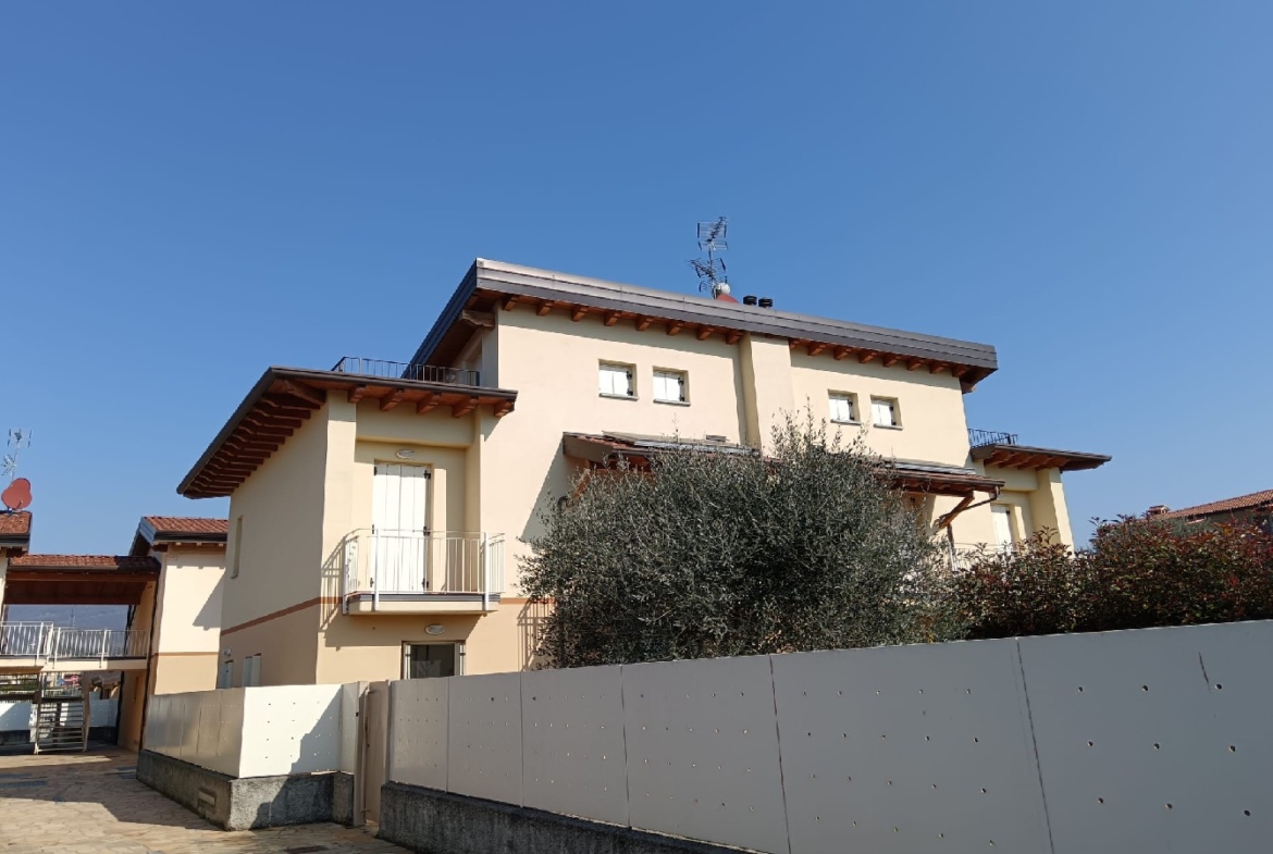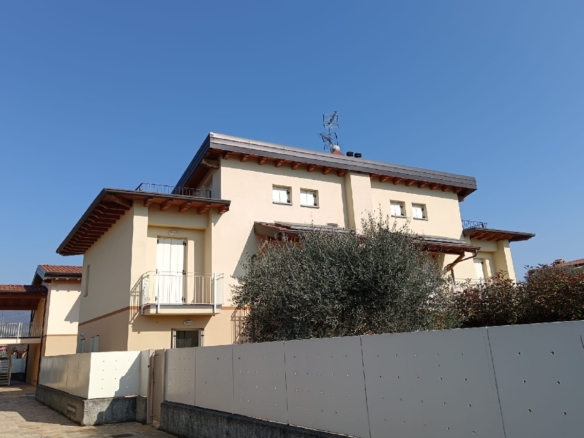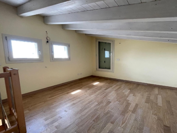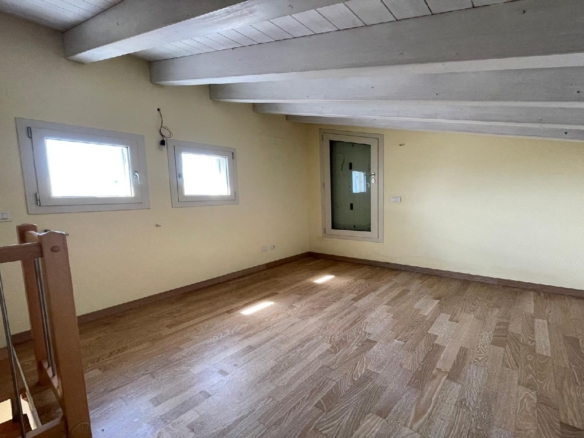 Nella zona ovest di Trescore Balneario, con tutti i servizi principali a portata di mano, all’interno di un più ampio progetto di espansione residenziale, proponiamo in vendita appartamento in villetta di recente realizzazione posto al primo ed ultimo piano, costituito da soggiorno/cucina, disimpegno, bagno ed una camera da letto, tre balconi e locale sottotetto soppalcato collegato da scala interna in legno con accesso a terrazza di 14 mq. Completa la proprietà l’autorimessa al piano interrato. Finiture di buon livello: pavimenti e rivestimenti in grès, parquet nel soppalco, infissi e persiane in alluminio, soffitto in legno con travi a vista sbiancate, predisposizione per l’impianto di aria condizionata e di antifurto. Euro 165.000. Qualità Poloni Immobiliare. (Classe energetica in fase di elaborazione).