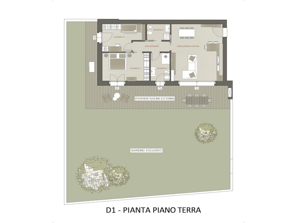 D1 – LIVING TRESCORE, la nuova residenza dove design moderno, comfort abitativo e innovazione sostenibile si incontrano per vivere green con stile. Nel comune di Trescore Balneario, in posizione strategica con i principali servizi a portata di mano, proponiamo in vendita ampio trilocale sito al piano terra composto da luminosa zona living con cucina a vista, disimpegno, due camere, due bagni ed oltre 200 mq di area esterna privata costituita da giardino e comoda zona lastricata. Impiantistica di ultima generazione ad alta efficienza energetica, con soluzioni che garantiscono consumi ridotti nel pieno rispetto dell’ambiente. VMC, riscaldamento a pavimento con pompa di calore esclusiva ed impianto fotovoltaico autonomo per ogni unità. Possibilità di autorimesse doppie o singole. Euro 310.000. Qualità Poloni Immobiliare. Valori di progetto classe energetica A4.