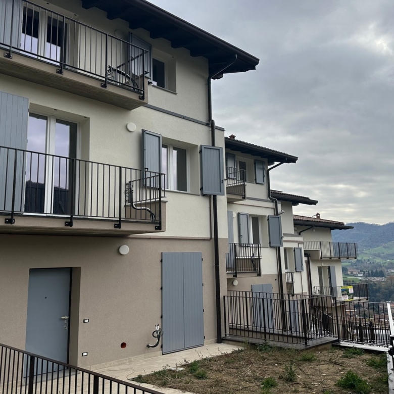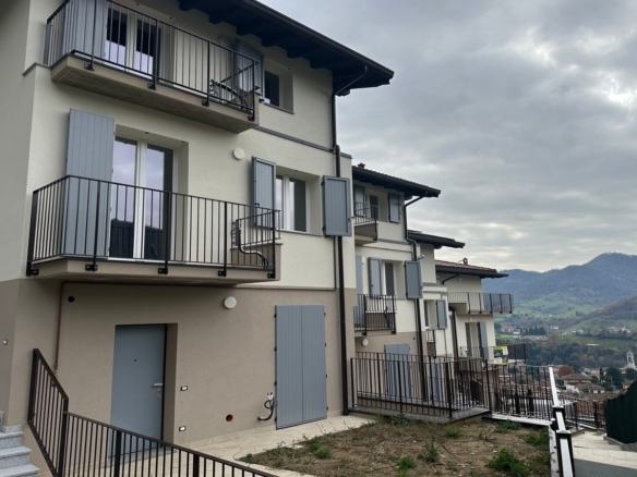 In suggestiva posizione panoramica del comune di Vigano San Martino proponiamo in vendita bilocale di nuova costruzione con ingresso indipendente posto al piano terra di un complesso di sole otto unità abitative. La soluzione si compone di zona living con cucina a vista, disimpegno, camera, bagno e due porzioni di giardino esclusivo. Completa la proprietà la cantina da 15 mq al piano interrato. Serramenti in PVC e persiane in alluminio. Euro 139.000. Si valutano permute. Qualità Poloni Immobiliare. Valori di progetto Classe Energetica B-A1.