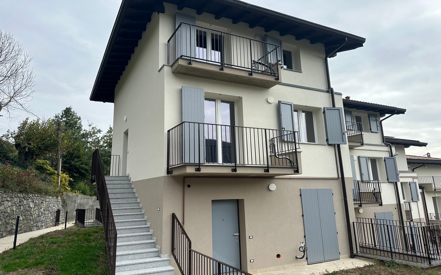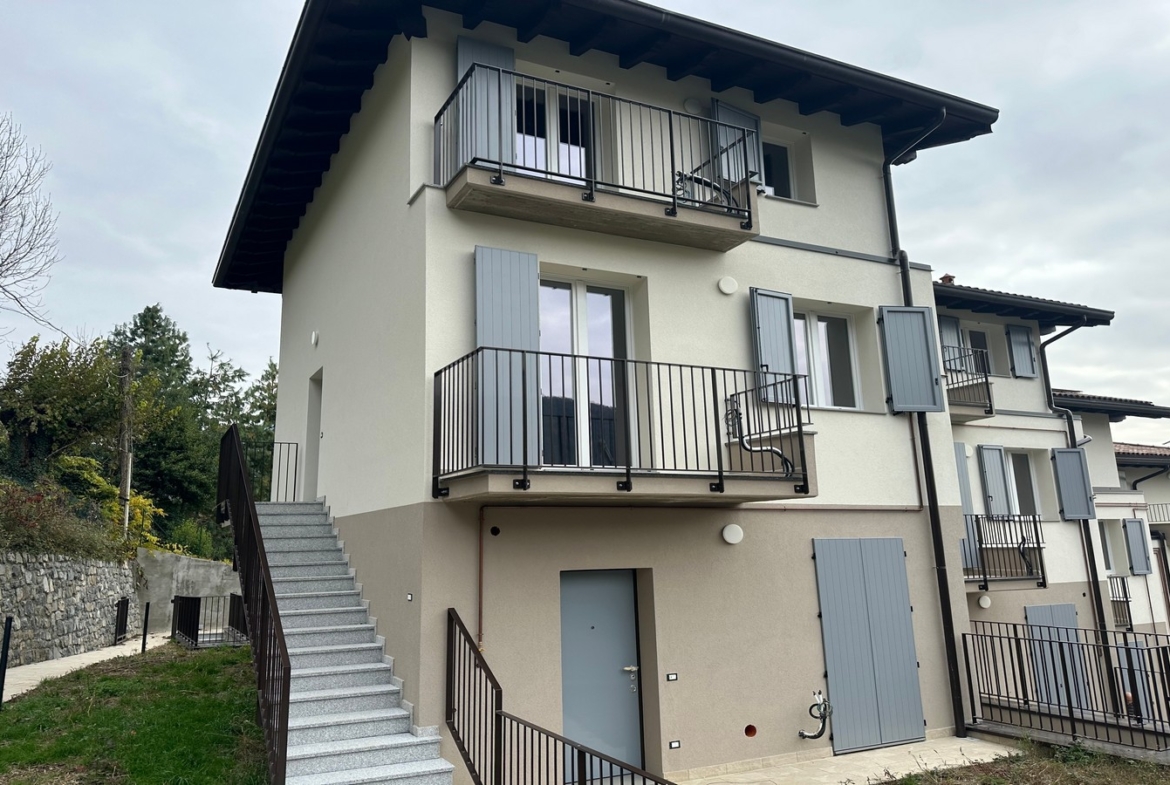 In suggestiva posizione panoramica del comune di Vigano San Martino proponiamo in vendita quadrilocale di nuova costruzione con ingresso indipendente posto al primo e secondo piano di un complesso di sole otto unità abitative. La soluzione, disposta su due livelli, si compone di soggiorno, cucina separata abitabile, disimpegno, bagno e balcone al piano primo, tre camere, disimpegno, bagno ed ulteriore balcone al piano secondo. Complet la proprietà la cantina da 13 mq al piano interrato. Serramenti in PVC e persiane in alluminio. Euro 249.000. Si valutano permute. Qualità Poloni Immobiliare. Valori di progetto Classe Energetica B-A1.